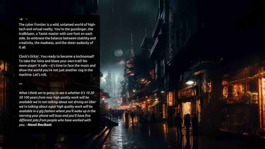 This guidebook is also a response to the seismic shift happening in the world of work, as Naval Ravikant fucking nailed it when he said that information technology is ripping apart the traditional employment model, giving birth to the cutthroat gig economy and the disintegration of companies. The future of work? High-quality, gig-based jobs offered by past collaborators or referrals, boosting productivity and creativity for those who dare to work on their own terms. aka Digital Nomads