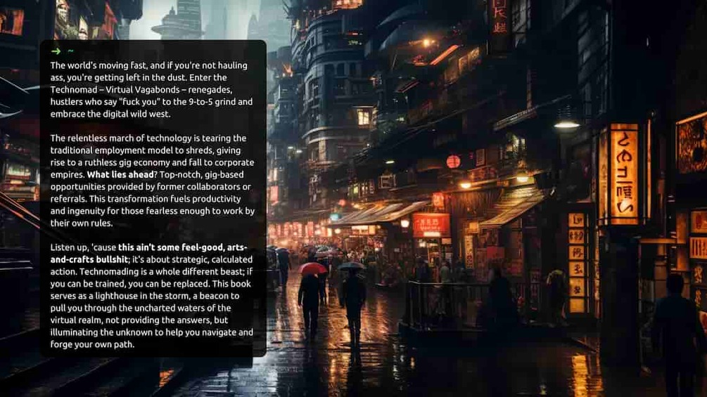 - Sharpen Your Mindware: Develop essential skills like sales, marketing, SEO, and copywriting (macro and micro mindware) to successfully navigate the digital landscape as a technomad. Continuous learning isn't just crucial; it's your ticket to survival in this ever-evolving cybernetic world. REAL TIPS AND ADVICE from my acual experience living and working in South East Asia.