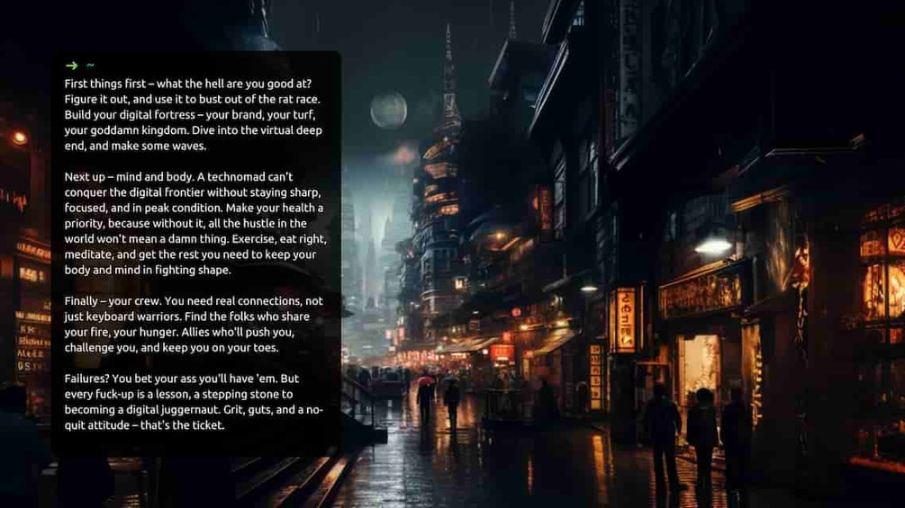 - Sharpen Your Mindware: Develop essential skills like sales, marketing, SEO, and copywriting (macro and micro mindware) to successfully navigate the digital landscape as a technomad. Continuous learning isn't just crucial; it's your ticket to survival in this ever-evolving cybernetic world. REAL TIPS AND ADVICE from my acual experience living and working in South East Asia.